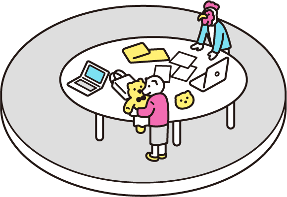 制作デスクは、制作の仕事を事務的な面からアシストする仕事。劇場予約、備品手配、経費精算や売上報告管理、お客様からの問合せ対応などのデスクワークはもちろん、オーディションの準備や案内など業務は多岐に渡り、コンテンツ制作を行う上で必要不可欠な存在です。