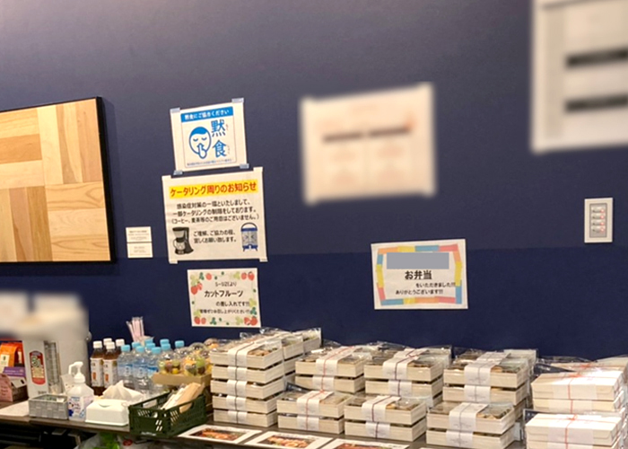 本番が開始して落ち着いたら、昼食の時間!公演期間中のお弁当は、制作で注文することが多く、毎日出演者・スタッフのテンションが上がるようなメニューを考えながら注文しています!次回の参考として、お弁当は毎回写真を撮るように心がけています。
