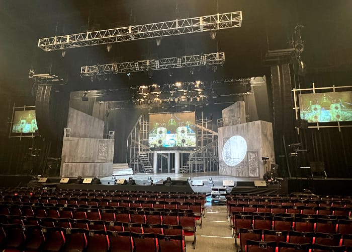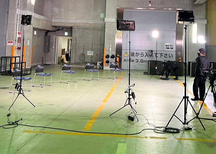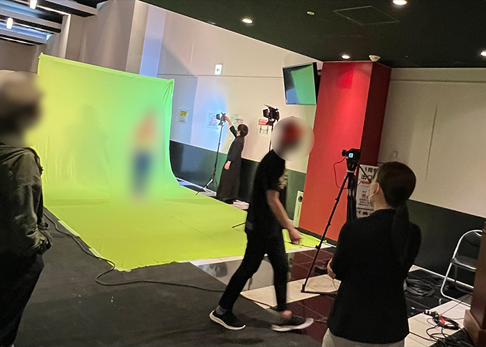本番で使用する映像に不備があり再撮影。劇場にグリーンバックを準備して撮影を行いました。撮影で使用する本番小道具やシーンに合った衣裳など把握して、撮影がスムーズに進むように進行しました。