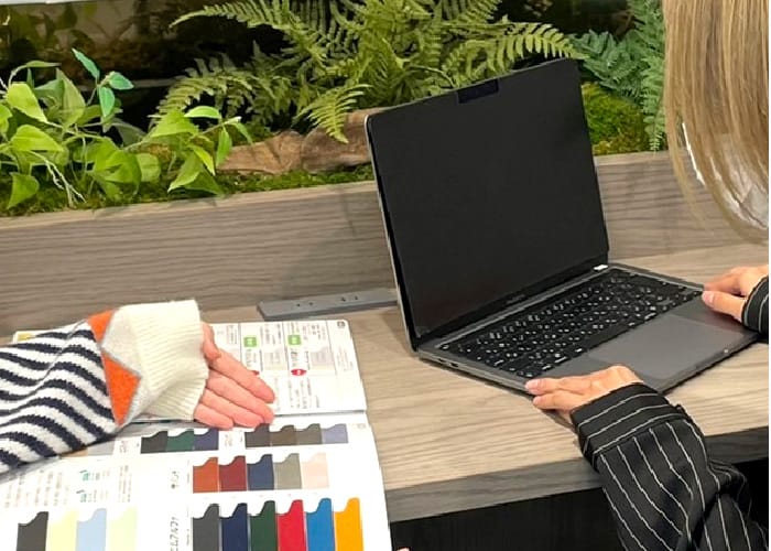 業者さんがイメージサンプルを持ってきてくれ、生地や色味などの仕様について詳しく打ち合わせをします。
